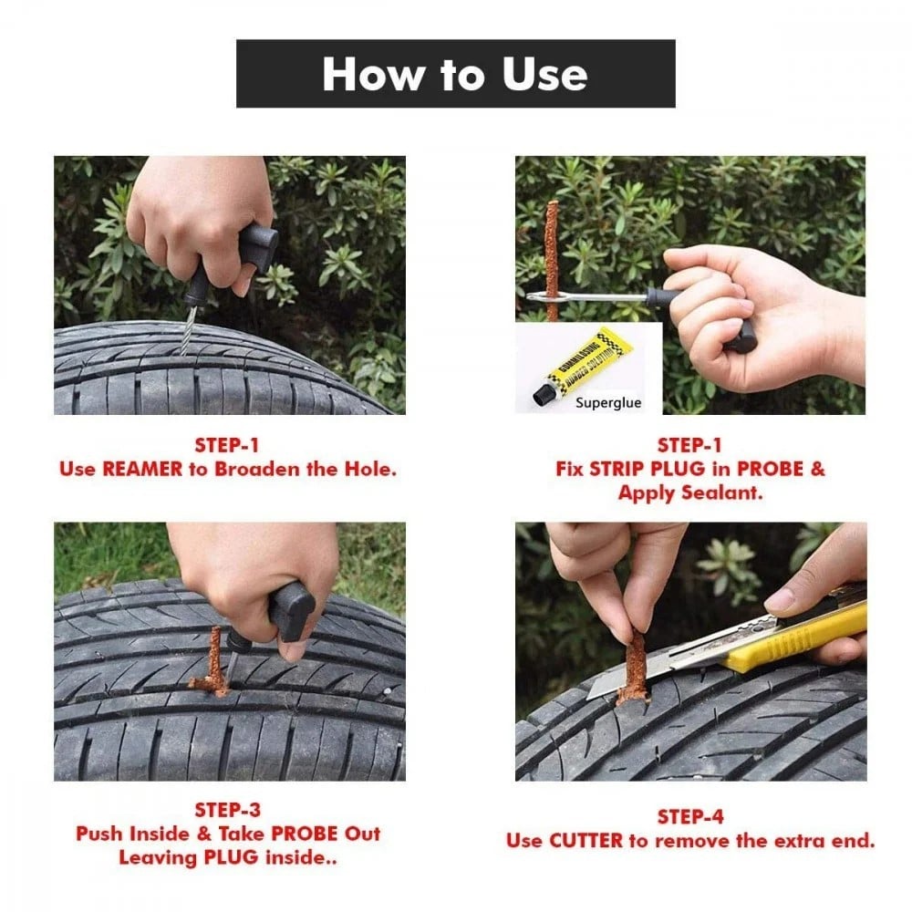 تتمثل محتويات ومكونات هذا الطقم في بعض العدد اليدوية التي يتم استخدامها في إصلاح بنشر الكفرات؛ وهي عبارة عن فتيلة وإبرة ومخرز.
