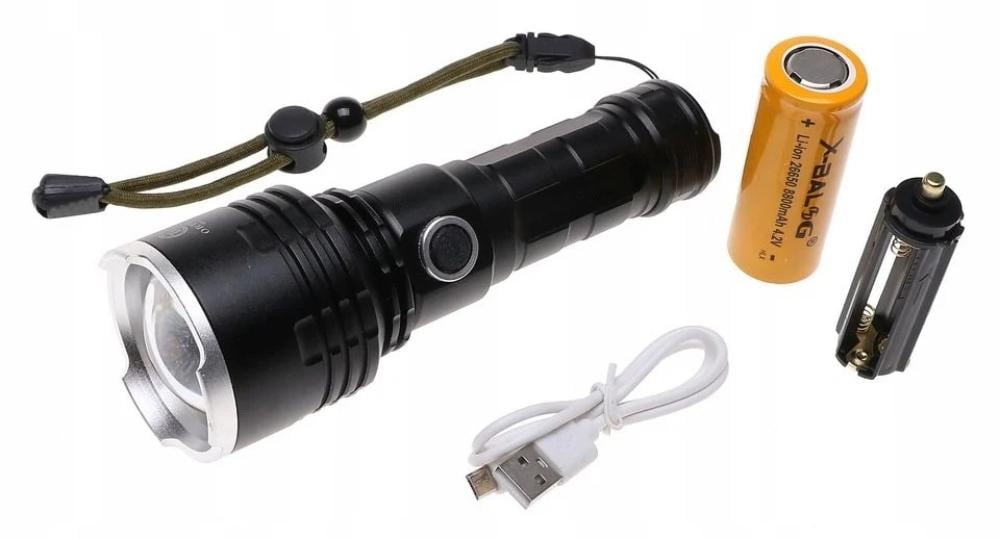 كشاف بطارية معدنية مع xhp-90 led مشرق جدا وبطارية عالية السعة 26650.