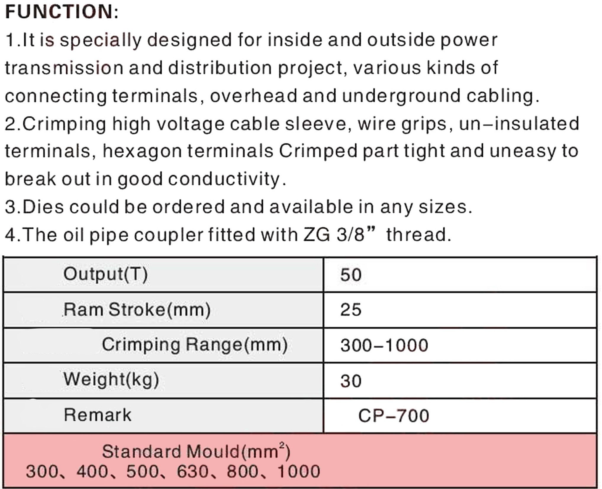 رأس مكبس كيبل هيدروليك FYQ-1000