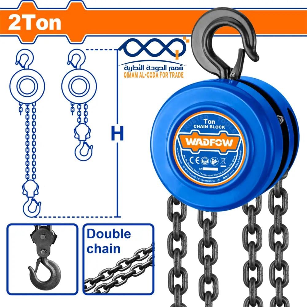الوصف:وزن الرفع المقدر 2 طن.ارتفاع الرفع 2.9 متر.عدد سلسلة التحميل: 2.مسافة الخطاف إلى الخطاف 380 مم.سحب السلسلة لرفع الحمل الكامل: 345 نيوتن.الوزن الصافي: 11.9 كجم.معبأ في صندوق ملون.