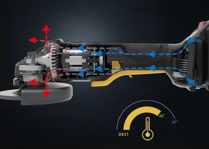 تصميم هيكل نحيف مع مفتاح تشغيل بشكل مقبض لتوفير تجربة مستخدم مريحة مع صندوق التروس ، مقبض مساعد مانع للاهتزاز، قبضة مغلفة بالمطاط ، ضبط سريع للحماية ---- المواصفات ----