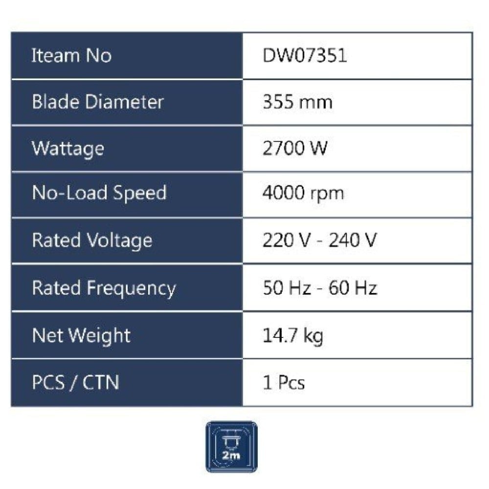 - يتميز بقرص قطع قياس 355 ملم لتحقيق أعلى معدلات القطع بدقة عالية.