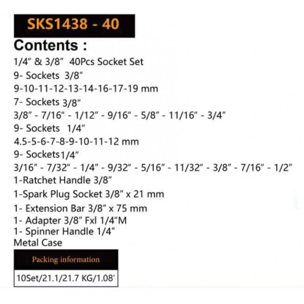 طقم حبوب ( 1/4 بوصة + 3/8 بوصة ) 40 قطعة TOWER