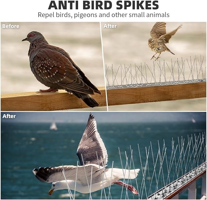 طارد الحمام طائر بطول 60 سم ويحتوي على 5 شوك هو جهاز مصمم لصد الطيور وتثبيتها في المناطق المفتوحة مثل الحدائق والأراضي الزراعية. يتكون من عمود بطول 60 سم مزود بـ 5 شوك تم تصميمها لتكون غير مريحة للطيور مما يجعلها تبتعد عن المنطقة المستهدفة. يتم تثبيته عمومًا على الأسطح السطحية مثل الأسوار أو السور أو الأسقف. يستخدم هذا الجهاز للحفاظ على نظافة المنطقة المحيطة ولمنع تلوثها بمخلفات الطيور.