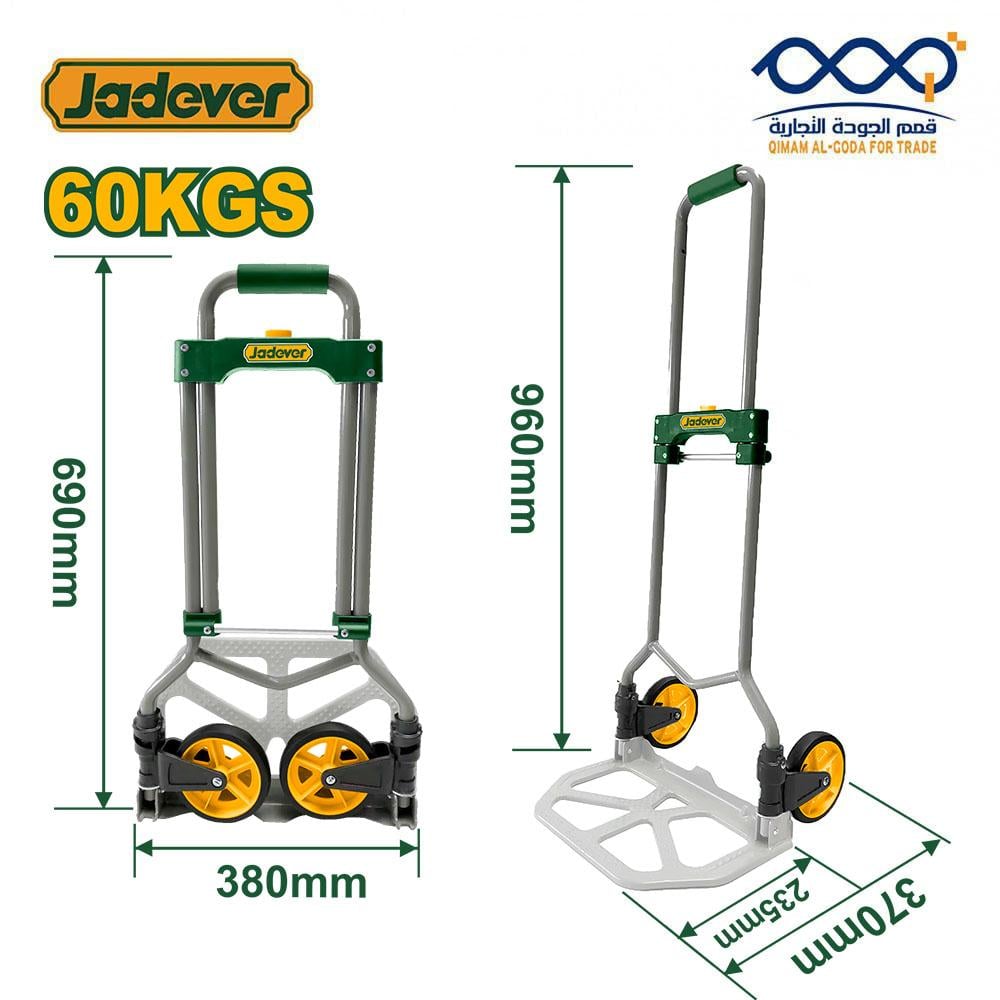 - قوية ومتينة: مصنوعة من مواد قوية ومتينة، تتحمل العربة وزنًا يصل إلى 60 كيلوجرام بكل سهولة. تصميمها القوي يجعلها مثالية لنقل الحمولات الثقيلة.
