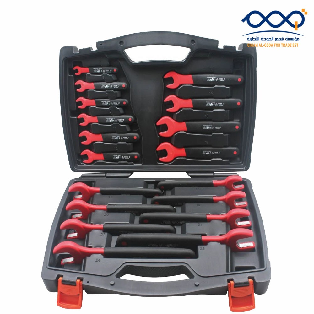 - يتكون طقم المفاتيح 19 قطعة مختلفة معزولة لتوفير الأمان عند استخدامها مع أسلاك كهربائية ذات جهد عالي .