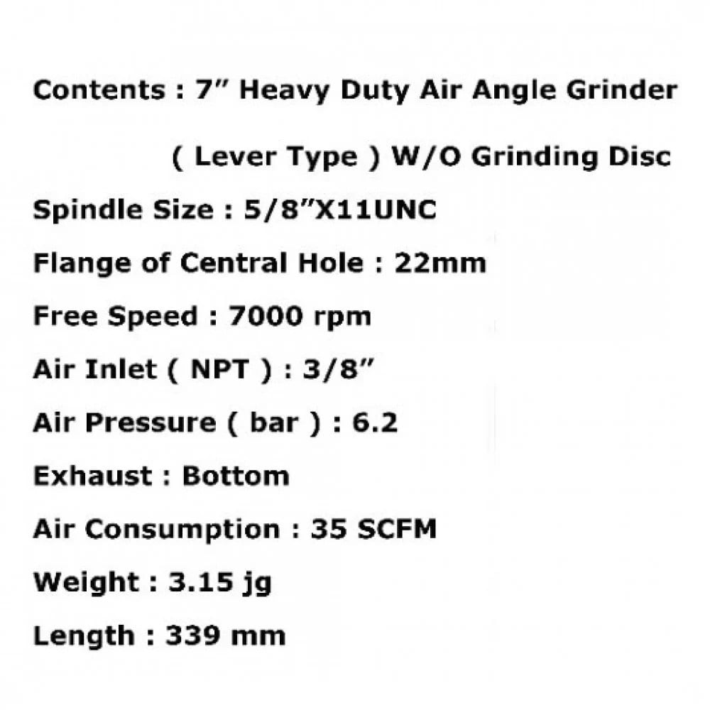 This heavy-duty 7-inch pneumatic angle grinder from TOWER in Taiwan is ideal for metal cleaning, rust removal, welding preparation and auto body fabrication quickly and efficiently. It features a patented internal control system, a powerful 1.0 HP motor, a rotation speed of up to 7,000 RPM, and a speed control knob.